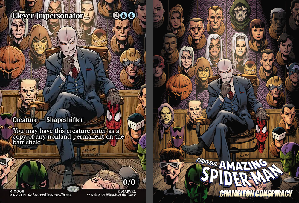 While this isn’t necessarily an “iconic” image, there’s not a lot of them for Chameleon, whose superpower is the ability to not look like himself, so any important panel with him in it often doesn’t look like he’s in it. This issue is from the modern version of Annuals, taking place between the rebooted Amazing Spider-Man #69 and #70. Without reading too many comics on either side, it appears that Chameleon is not the only one who can do that. He comes from a secret child soldier program full of shapeshifters, and attempts to gaslight Peter Parker’s younger sister Teresa, who is a secret government agent, that she has been a shapeshifter the whole time. Comics are weird.